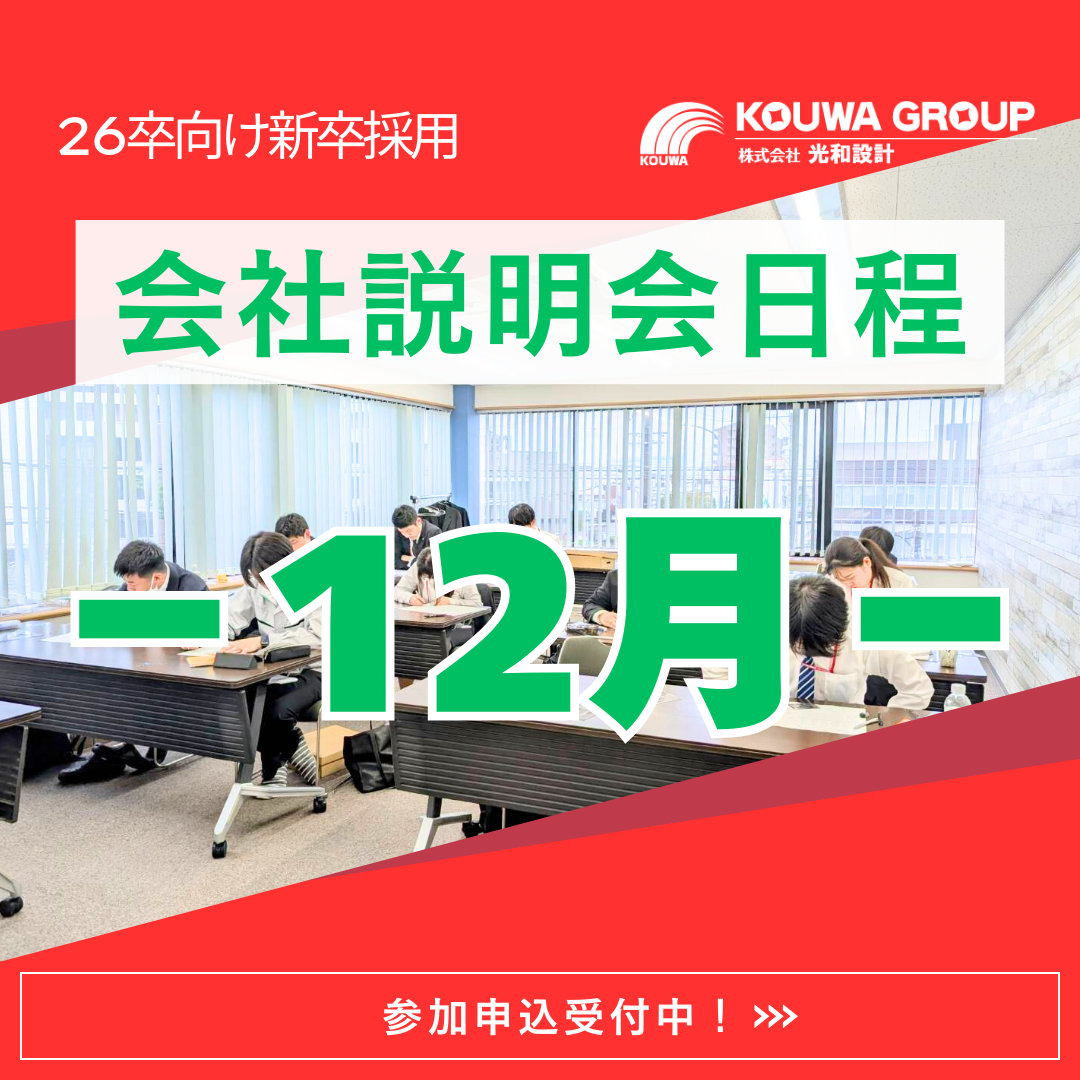 お知らせ採用情報2025.11.25【12月開催】【26卒向け】【愛知県豊明...みなさん、こんにちは! 株式会社光和設計 採用担当...More -