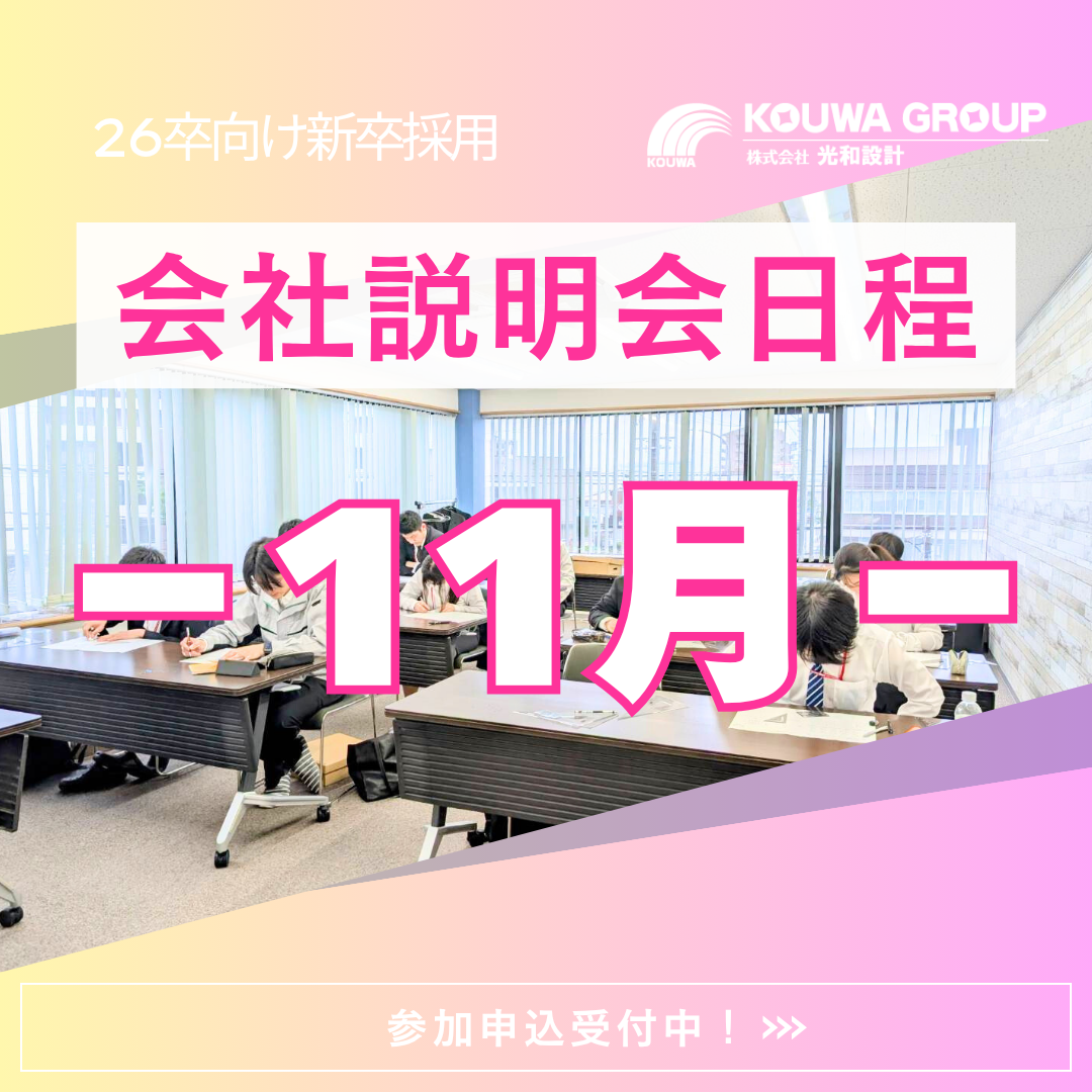 ◆◇ (株)光和設計 26卒向け 11月会社説明会日程 ◇◆